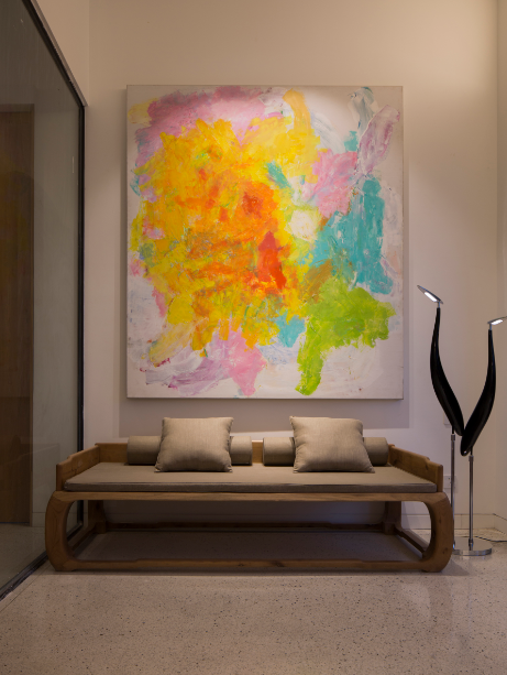 北京的照明場景應用中,將新亞洲風尚燈品運用在工作室里。在工作區(qū)域的辦公桌上,具有照明功能的臺燈“扁舟”,曲線自然的扁舟造型,配合柔和寧靜的光線,讓人在工作中靜心暢游。順著走廊盡頭望去,燈品“靜廂”裝點其中,仿木造型框架,簡樸自然,方正大氣又有幽遠的中式風格。高高懸掛照射出純凈的光效,給人一種不躁不爭,安然寧靜的心境!墻面用“竹影”壁燈裝飾,取材于竹影映在窗上的傳統(tǒng)文人景象,頗有“素壁斜輝,竹影橫窗掃”的詩意。側(cè)面發(fā)出的光線與古典的案桌、瓷瓶干花光影交錯,一桌一花一壁燈,沉思靜悟,安頓心靈之處已然形成。休息區(qū)則使用落地鶴影燈,模擬白鶴,曼妙仙姿,傲然挺立,暗藏發(fā)光模組,在滿足裝飾照明的同時,也為空間環(huán)境增添風雅情趣。外加舒適的沙發(fā)、色彩豐富的裝飾畫,給休息的人營造一種遠離喧囂的舒適感。