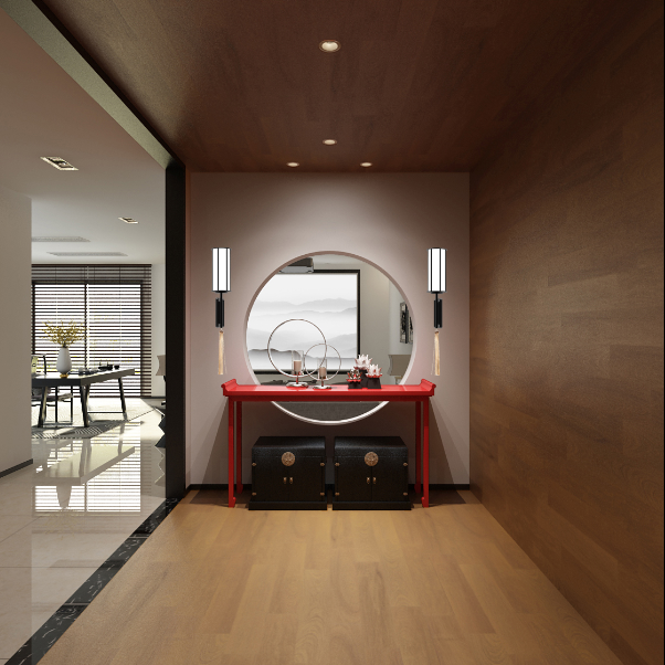 在蘇州的照明場景應用中,將新亞洲風尚系列燈品運用在家居環(huán)境中。推門入戶玄關(guān)處,一對清竹燈赫然入眼,竹節(jié)造型的燈體,雅致有型。下綴長條流蘇,隨風輕擺,動靜結(jié)合。圓形框景打造空間感,中國紅的條案古風十足,濃濃的書香氣息撲面而來。進入客廳,蜻蜓燈的點綴,輕盈動感,錯落有致。中國紅的罐子以及中式的隔斷,使客餐廳隔而不斷,達到視覺通透明亮的效果。木飾面的電視背景墻,與極簡的現(xiàn)代中式沙發(fā)黑白灰的配色相互映襯,給人舒適又自然的享受。再往里走,客廳的黑白灰延伸到了餐廳,與餐廳黑白配色的極光燈保持一致,圓形桌寓意一家人團團圓圓,而周圍的山水畫、異石擺件,餐邊柜上的荷花,每一處細節(jié)都彰顯著濃厚的中式氣息。